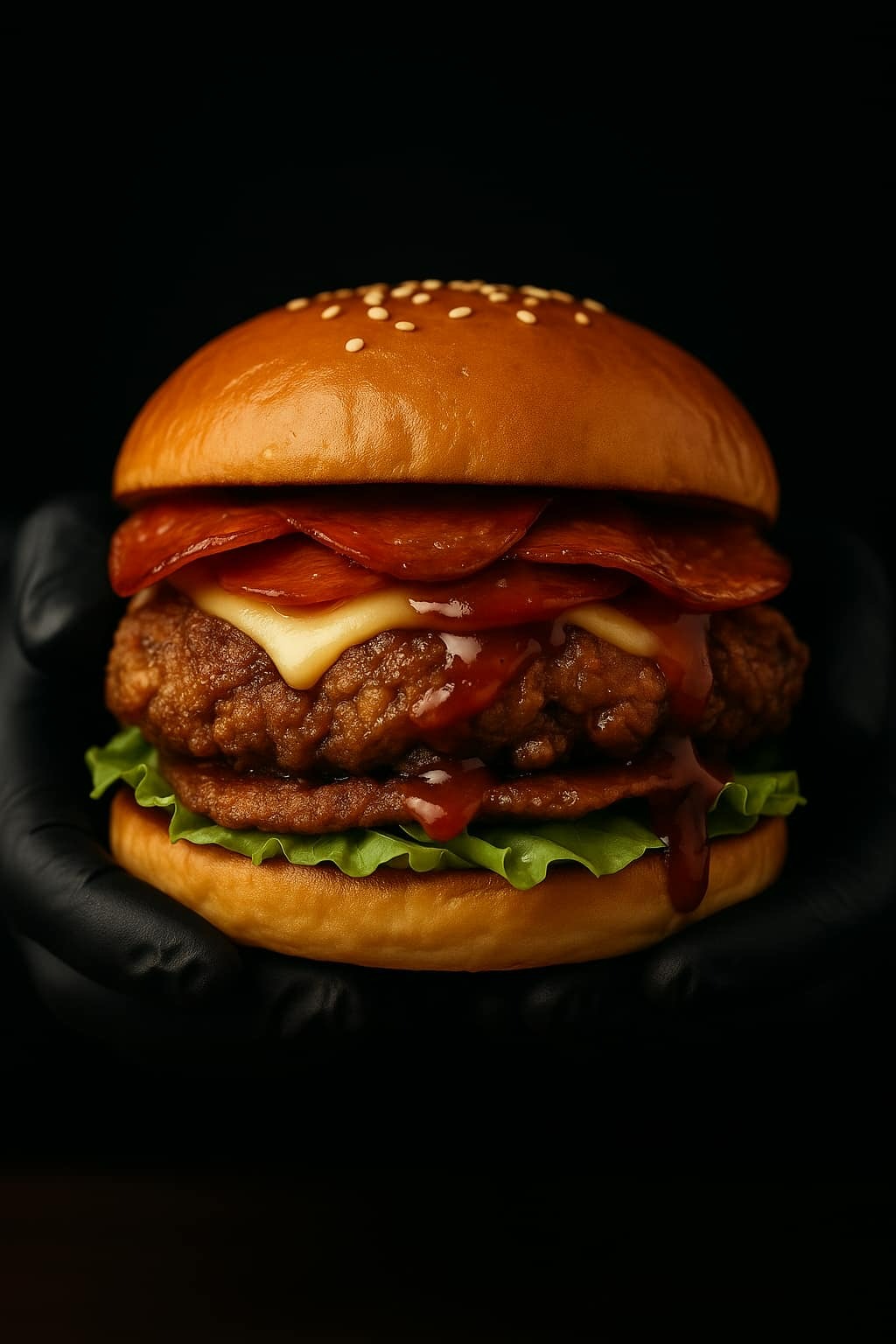 100% wołowina, sos hot tomato, sałata, cebula, czerwone jalapeno, pepperoni, cheddar -