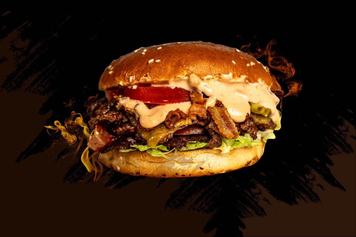 100% wołowina x2, sos autorski curry, sos carolina-mayo, sałata, pomidor, ogórek konserwowy, cheddar x2, bekon x2 -